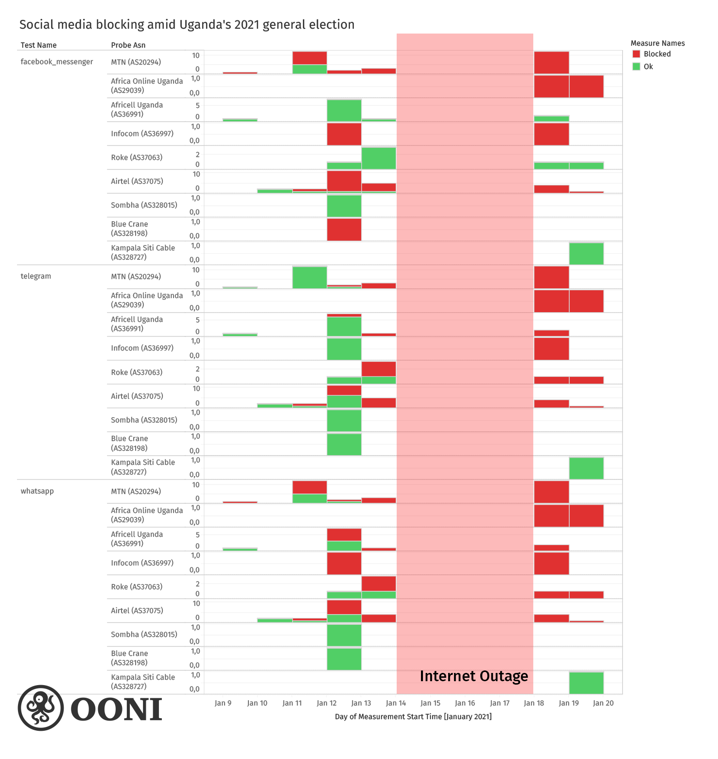 We thank OONI Probe users in Uganda who