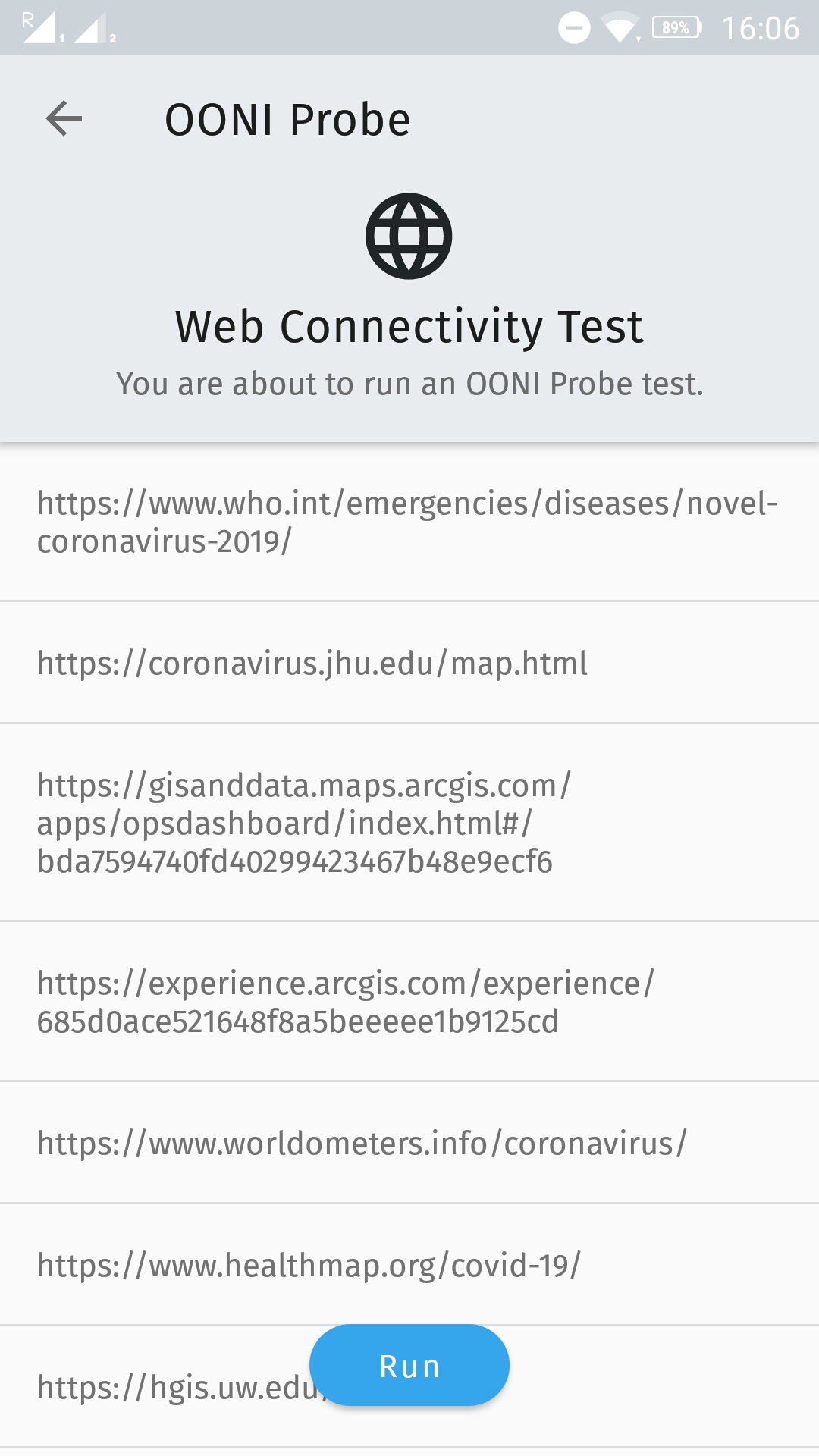COVID-19 (25 URLs)3) Open the button with your OONI Probe mobile app (not with a