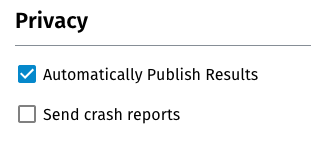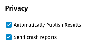 By default, the automatic publication of your OONI Probe test results is enabled, while the submission of crash reports is disabled (unless you opted-in during the onboarding).