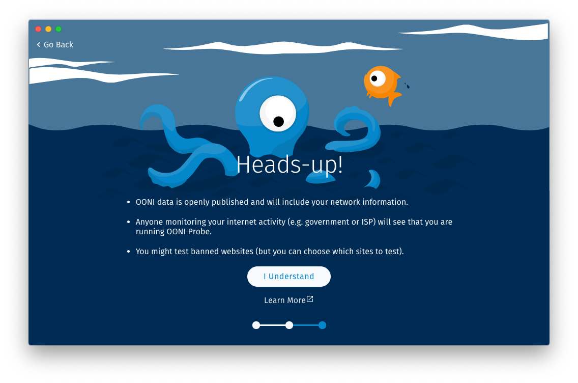 Step 3. Once you have learned about potential risks associated with running OONI Probe, click I understand.