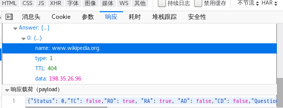 我们能够通过DNS over HTTPS成功解析www.wikipedia.org域名